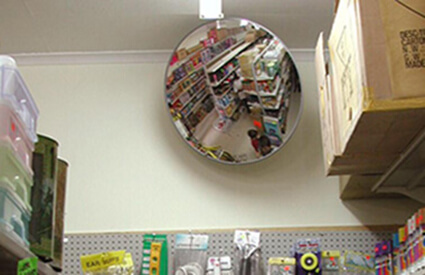 Der Halbkuppelspiegel bietet einen 180° Winkel-Überblick und wird verwendet, wenn eine bessere Perspektive benötigt wird. Er kann in Geschäften, Lagerhäusern, Produktionsanlagen, Büros oder anderen Institutionen benutzt werden.